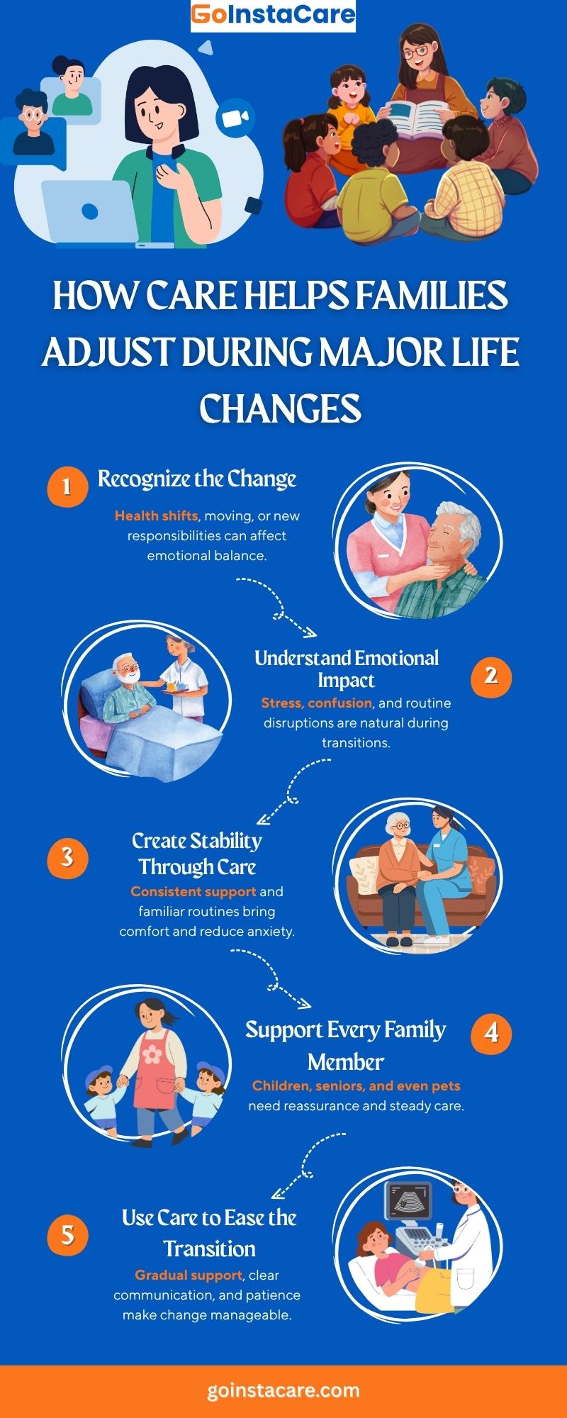 Care gives families a steady way to deal with change, but it doesn't stop it. When life changes, constant and caring care can help reduce stress, confusion, and emotional overload. It gives you structure when your habits break down and confidence when solutions aren't clear. Families don't have to accomplish everything on their own if they get the right help. Care takes away uncertainty, brings things back into balance, and gives people a chance to change without feeling rushed. Over time, this steady presence builds trust and makes people feel safe emotionally. Families learn to adapt quietly, knowing that help will always be there, even when things change.