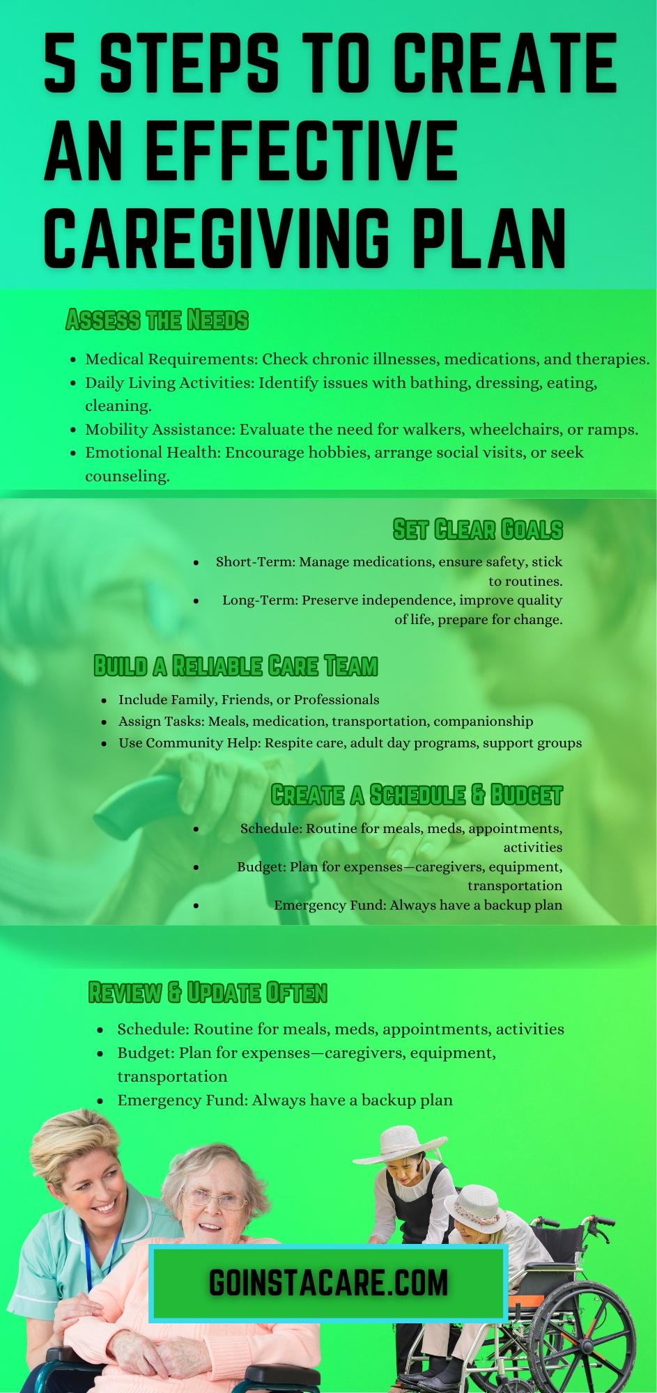 Caregiving plans must be flexible. Regularly review and update them to address any changes: