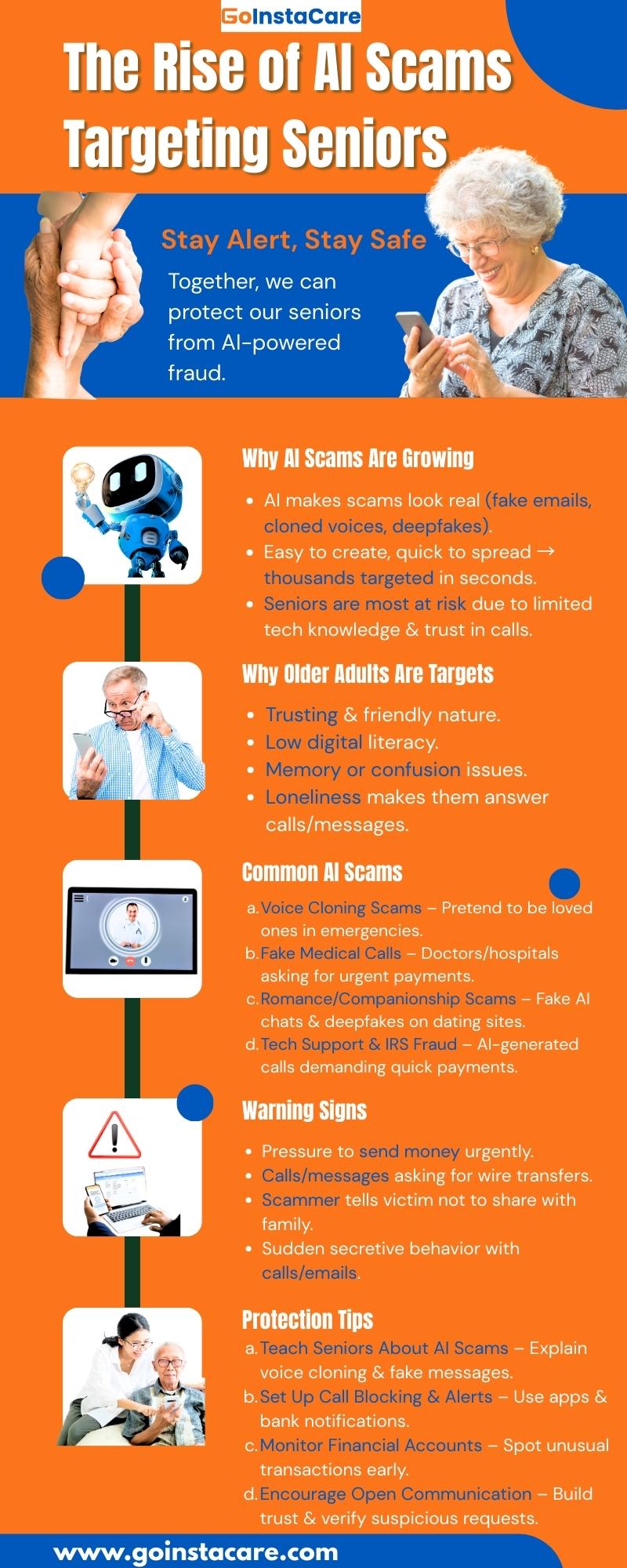 Teaching seniors about AI scam tactics | Explain how voice cloning, fake emails, and chatbots work in simple terms. Awareness makes seniors pause before responding and gives them confidence to question suspicious calls or messages. |